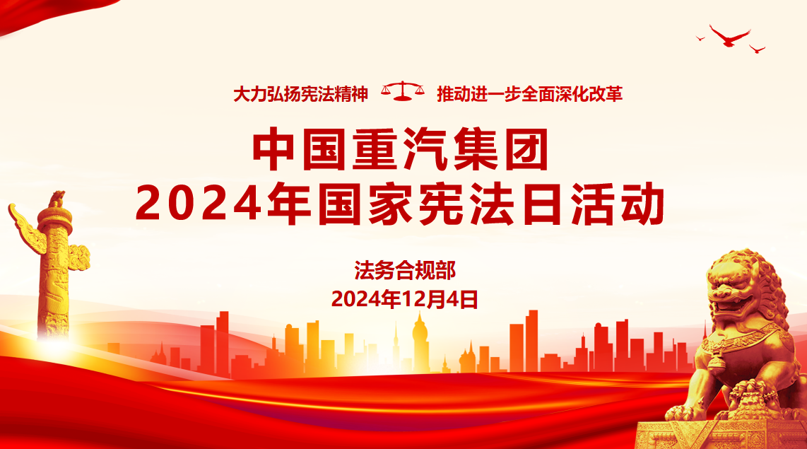 ??2024年12月4日是我國第十一個國家憲法宣傳日,2024年12月1日-12月7日是我國的第七個憲法宣傳周。為進一步教育引導集團全體干部職工學習憲法、遵守憲法,強化憲法意識、弘揚憲法精神,近日中國重汽集團根據省國資委、山東重工集團工作安排,組織開展了“憲法宣傳周”系列活動。