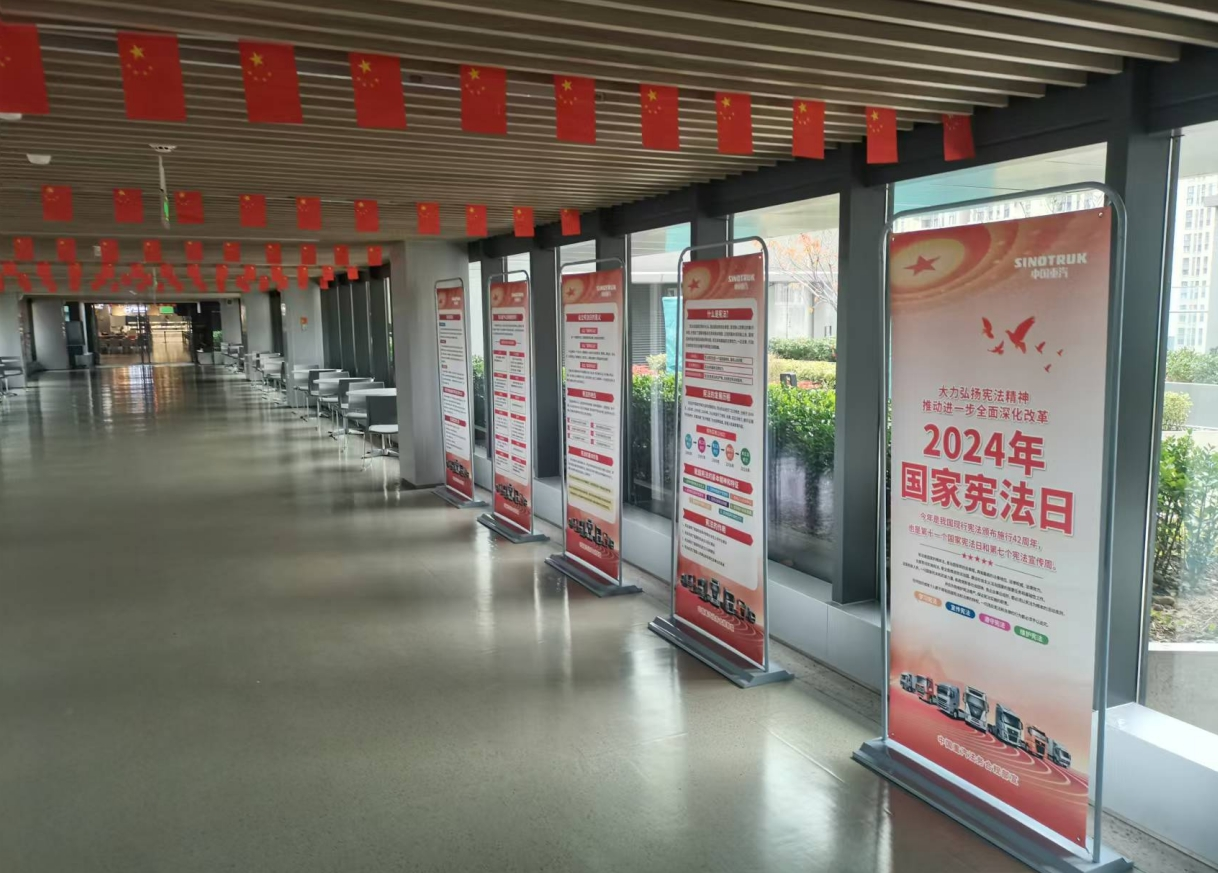 ??此外,中國重汽還在辦公場所還設置了宣傳展板,以普及憲法知識,宣傳憲法精神,進一步營造濃厚的法治氛圍。